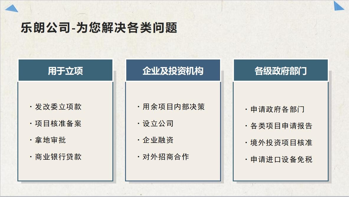 【乐朗规划设计研究院】致力于发展成为一家业界的专业化咨询服务公司,专注于为客户提供专业化的咨询服务。主要经营范围:项目建议书、可行性报告、资金申请报告、项目申请报告、商业计划书、项目计划书|、节能评估报告、项目价值评估报告、投资价值分析报告、招投标书|、项目资金管理实施细则、社会稳定风险评估报告、企业管理策划方案等。